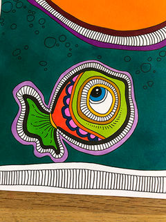 Sie wurden mit Filzstift gezeichnet, sind innen und aussen mit verschiedenen Sujets illustriert.